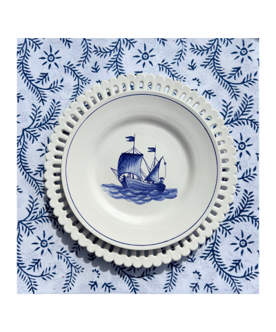 Belle assiette Chevet ajourée avec décor peint à la main Moustier 5 polychrome entièrement réalisée et ajourée à la main par nos maîtres artisans. Ce style ajouré a forgé la réputation de Bourg-Joly Malicorne et nous sommes fiers de continuer à produire nos assiettes selon les mêmes techniques traditionnelles du XVIIIe siècle.